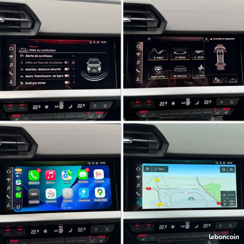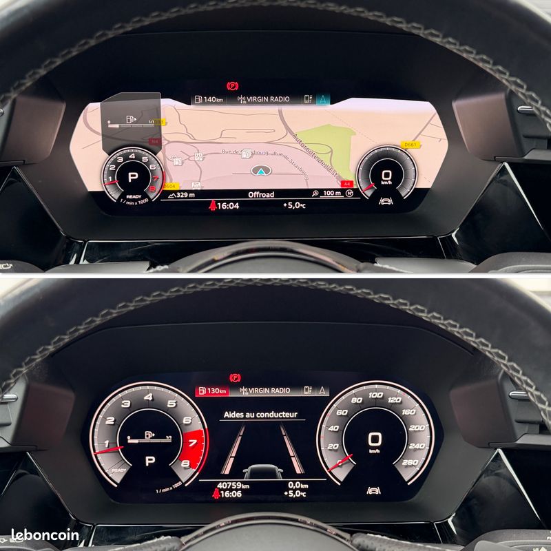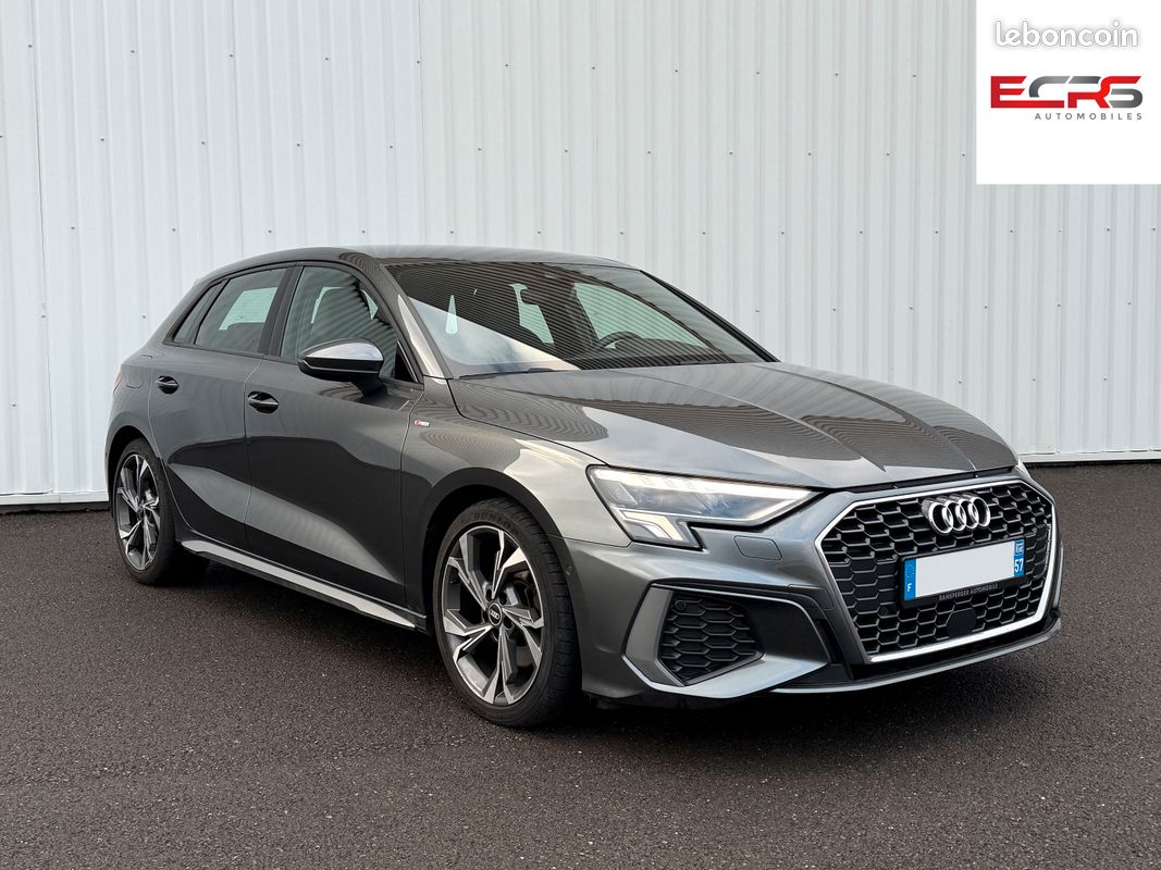 AUDI A3 SPORTBACK S-LINE – MOTEUR ESSENCE 35 TFSI 150 ch – 8 cv – 5 portes – 5 places – boite de vitesse automatique S-TRONIC 7 – couleur : GRIS DAYTONA NACRÉ – date de première mise en circulation : 12.03.2021.