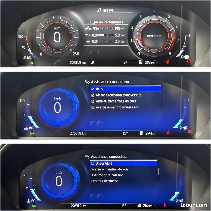 LES PRINCIPAUX EQUIPEMENTS : TOUTES OPTIONS FORD SAUF PACK PERFORMANCE.